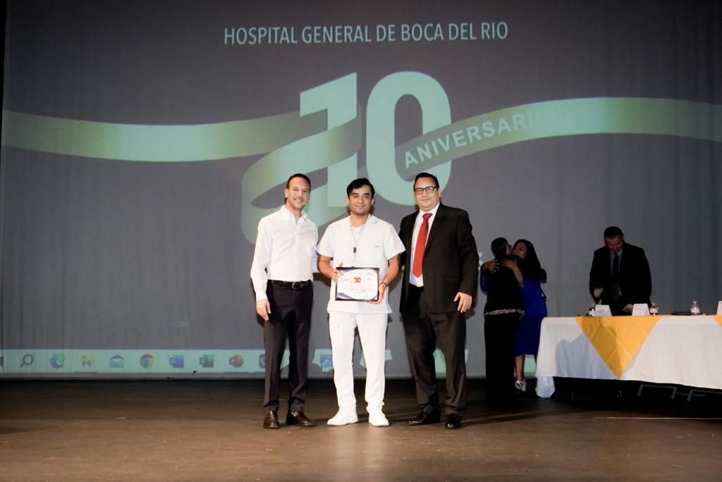 El alcalde Juan Manuel Unánue Abascal, asistió a la ceremonia de aniversario del Hospital General de Boca del Río por sus primeros 10 años prestando atención de calidad a las familias del municipio y de localidades aledañas.