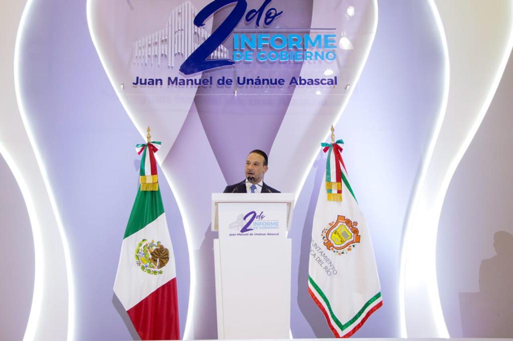 “Boca del Río es un referente para el desarrollo en el sureste mexicano, esto gracias a la suma de esfuerzos que se realizan desde mi gobierno, así como desde los demás sectores de la sociedad”, expresó el alcalde Juan Manuel Unánue ante más de 10 mil personas que asistieron al World Trade Center de Boca del Río a presenciar su Segundo Informe de Gobierno.