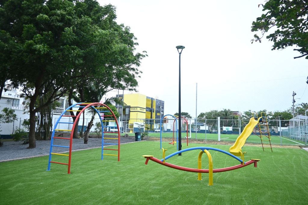 Dijo que en el área de amenidades se colocaron nuevas luminarias con focos de led, se colocaron bancas nuevas y se pintaron todas las superficies, además, se instaló un juego para que las niñas y niños pasen un rato agradable.