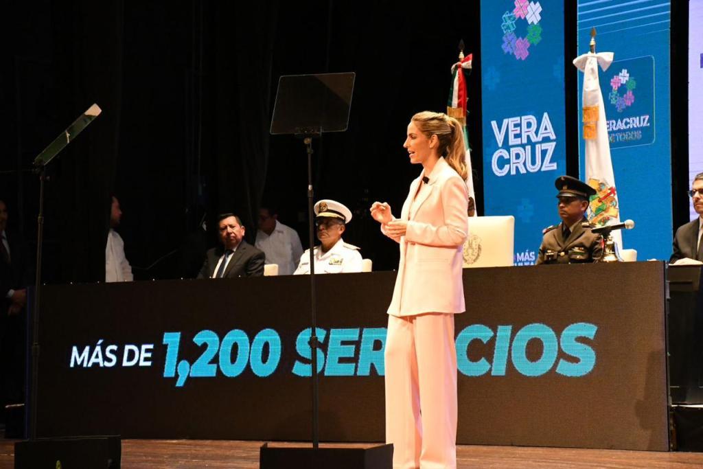 Al inicio de su discurso, la Alcaldesa agradeció la asistencia de las autoridades navales y militares, de la senadora, diputados federales y estales, alcaldes y ex alcaldes, líderes del PAN, PRI y PRD; líderes sindicales, autoridades educativas, representantes de cámaras, colegios y asociaciones; empresarios, cónsules y asociaciones religiosas, y de manera especial a su esposo Miguel Ángel Yunes Márquez, y a sus hijos María, Hanna y Miguelito.