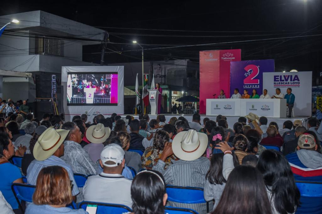 Villa de Tlalixcoyan, Ver.-La alcaldesa de Tlalixcoyan, Elvia Illescas Loyo presentó su Segundo Informe de Gobierno en la congregación de Piedras Negras, cumpliendo así con su compromiso rendición de cuentas y de velar por el bienestar de sus habitantes.