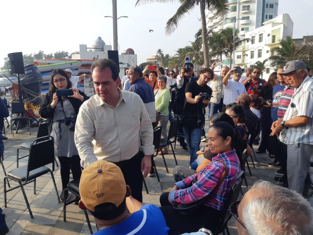 Minutos más tarde, el candidato de la alianza «Fuerza y Corazón por Veracruz», Pepe Yunes, tomó el micrófono y dijo a los representantes pesqueros de Antón Lizardo, Alvarado, Úrsulo Galván, Veracruz y Boca del Río, que es increíble que el gobierno federal, y sobre todo el estatal, se haya olvidado de una actividad económicamente importante y emblemática de Veracruz.