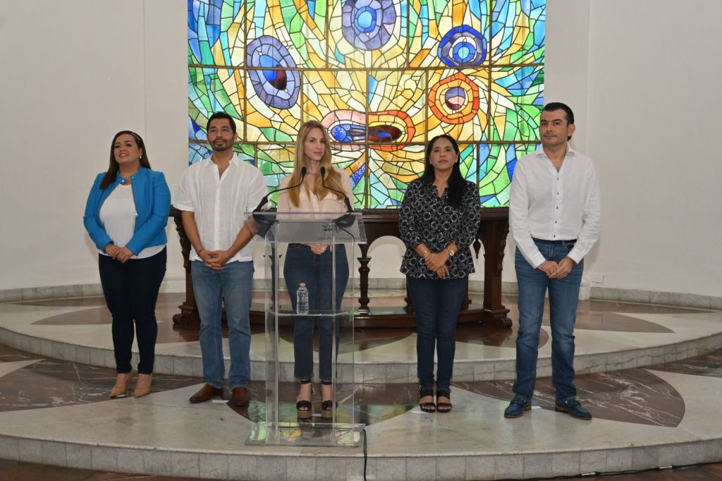 En la conferencia de prensa, la Alcaldesa estuvo acompañada por el oficial estatal encargado del Registro Civil del municipio de Veracruz, Sergio Lira Escobar; por la regidora Aurora Luisa Alvízar Guerrero; el director del Registro Civil, Ricardo Alberto Toache Abreu; y la directora del DIF municipal, Iliana Liseth León Huesca.