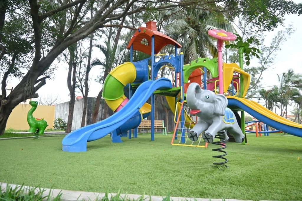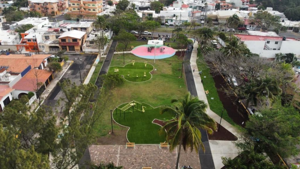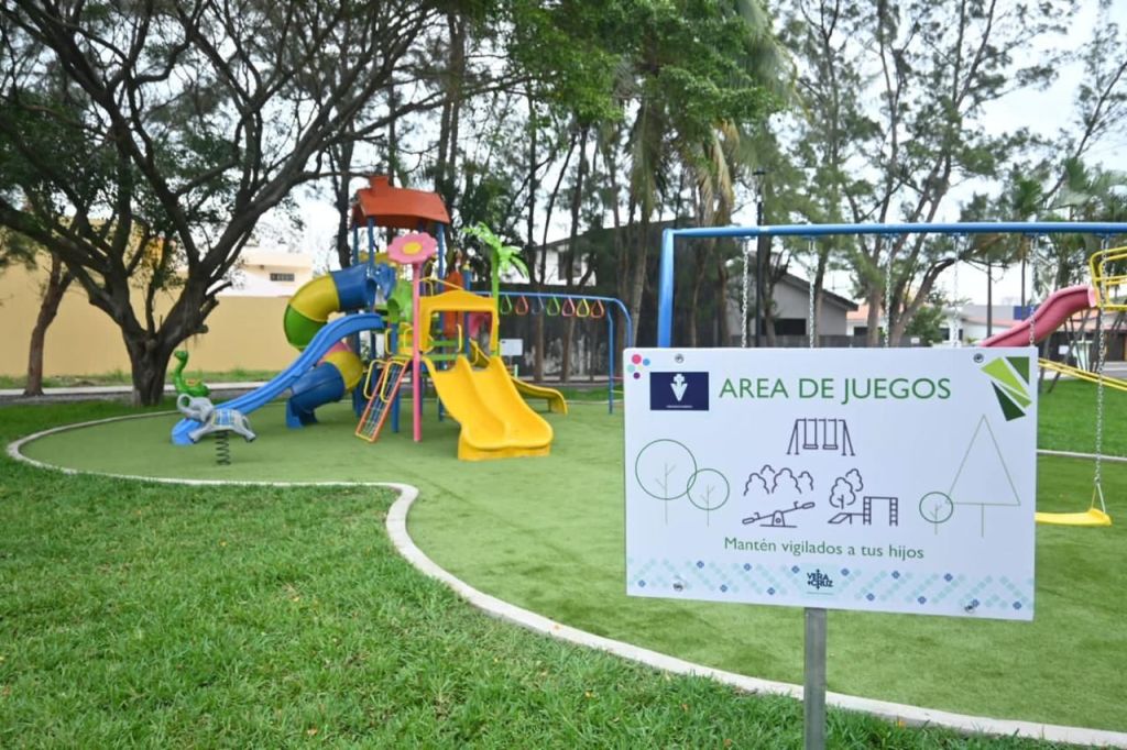 Destacó la construcción de una trotapista, además de un área de juegos infantiles con toboganes, paredes escaladoras, resbaladillas, pasamanos, columpios, sube y baja, y juegos montables, todo con pasto sintético para brindar seguridad a los menores.