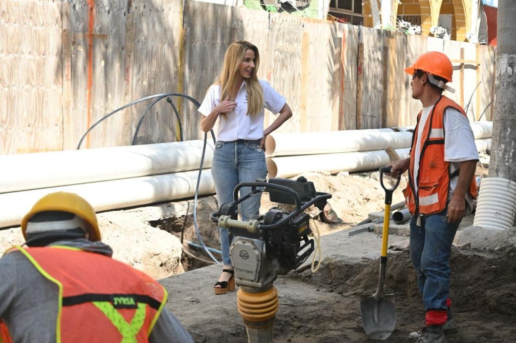 *Veracruz, Ver., 06 febrero 2024.-* Al realizar un recorrido para supervisar los avances en la obra de introducción del colector hidráulico sobre la calle Lerdo, en el Zócalo de la Ciudad, la alcaldesa Paty Lobeira de Yunes afirmó que esta obra va muy bien y se está trabajando dentro de los tiempos marcados.