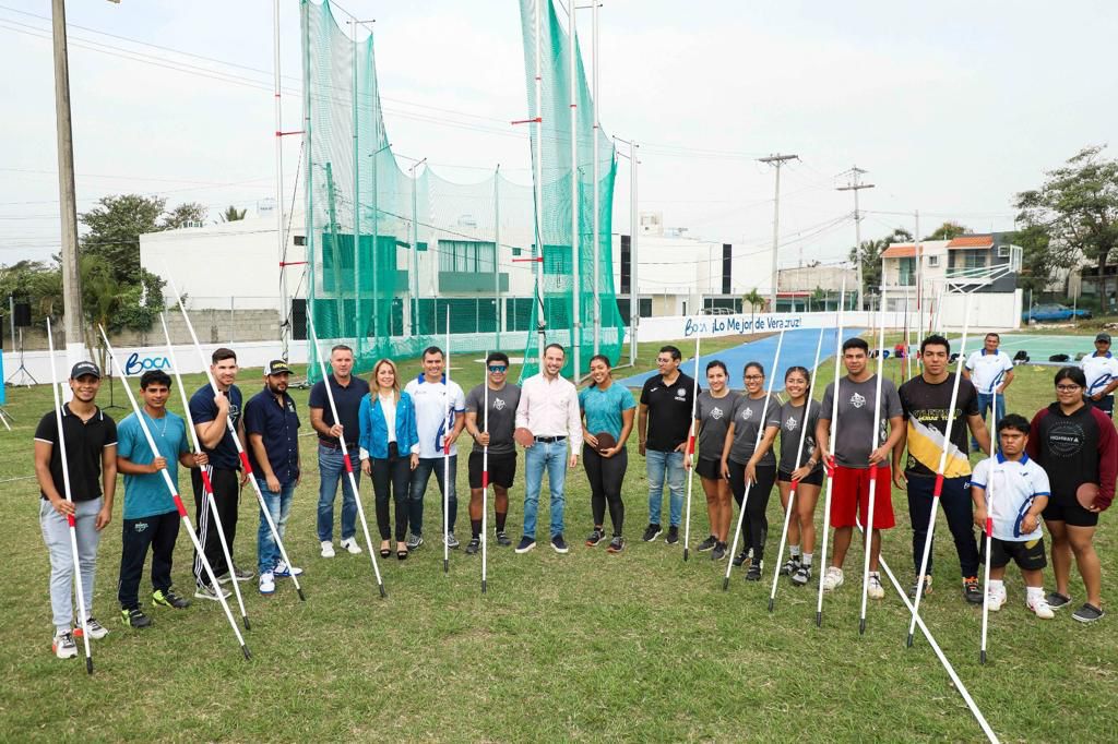 Boca del Río, Ver.- El Ayuntamiento de Boca del Río en coordinación con la iniciativa privada, compraron e instalaron una «reja de lanzamiento» para las disciplinas de jabalina, martillo, bala y disco en la Unidad Deportiva «El Morro».