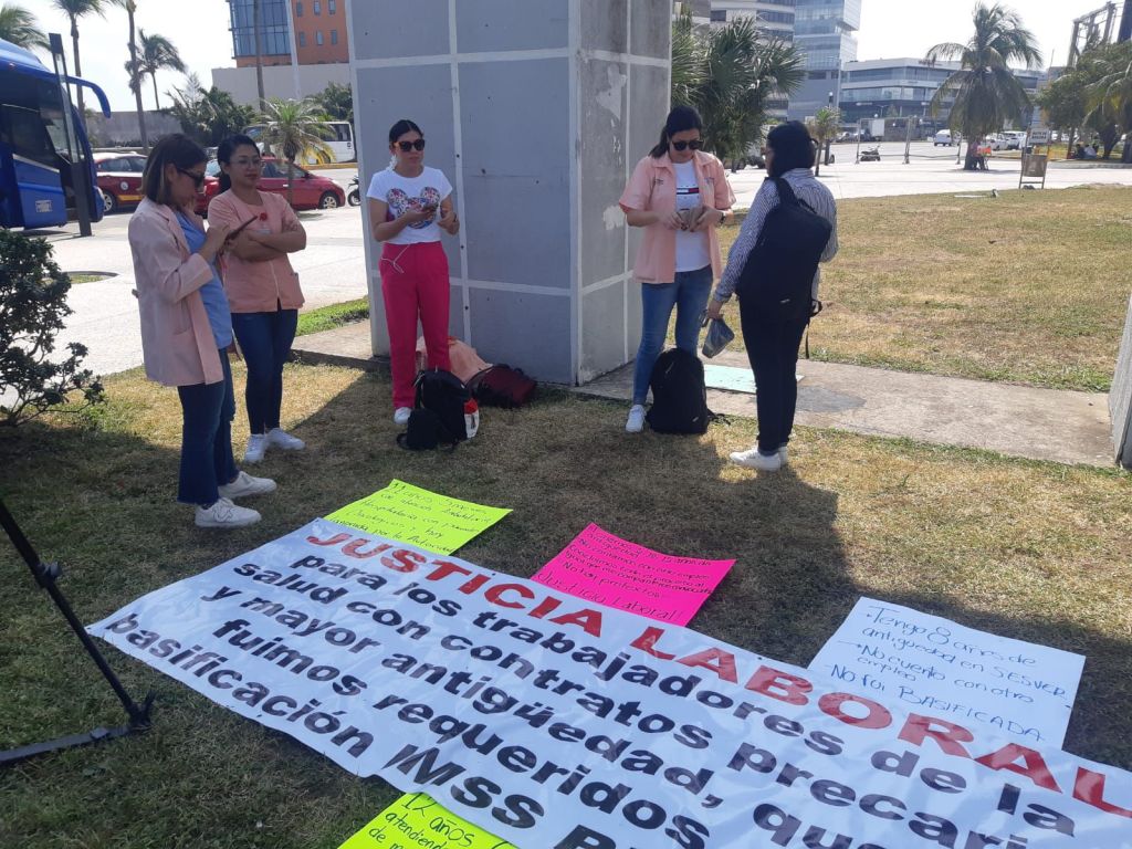 “Ahorita el personal que se encuentra dentro (Wolrd Trade Center) ya va a firmar una basificación, van a tener el beneficio económico, van a tener prestaciones, este proceso se dijo que iba ser por antigüedad, el presidente de la República comentó que ya no iba a haber influyentismo y no entendemos por qué el personal de menor antigüedad se encentra adentro, yo tengo 8 años y 16 días de antigüedad para los Servicios de Salud de Veracruz en el Centro Estatal de Cancerología”, dijo América Hernández, trabajadora social del CECAN.