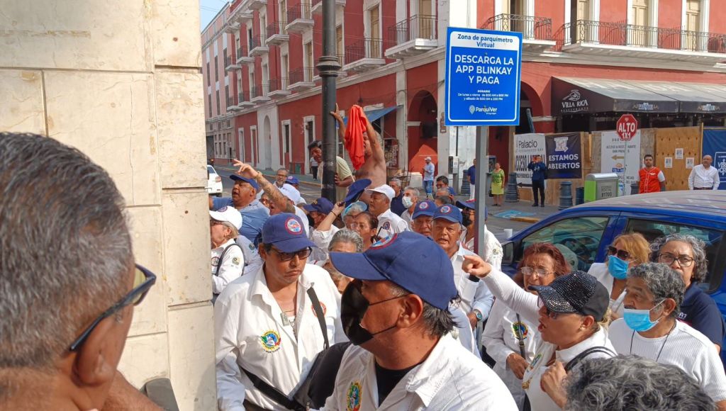Veracruz, Ver.- Ex trabajadores portuarios despedidos durante la requisa de 1991, «reventaron» la rueda de prensa que se encontraba dando el aspirante a la Senaduría por Movimiento Ciudadano, Dante Delgado Morales.