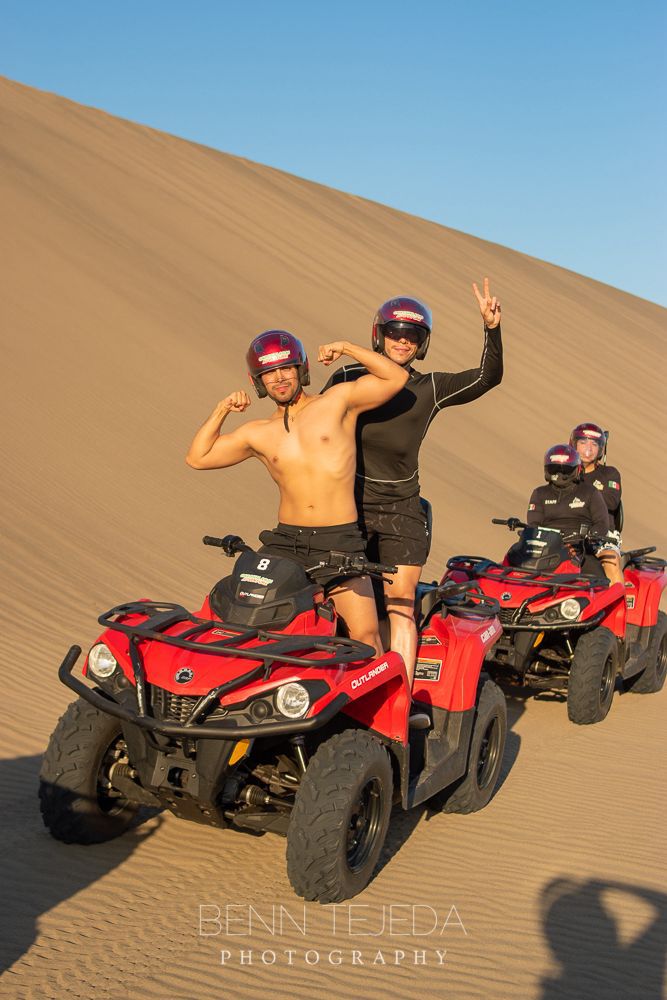 Se puede practicar sandboarding, salto en dunas en Bungee, o bien pasear en jeep o en un vehículo 4 x 4y que los finalistas del Míster Model pudieron practicar.