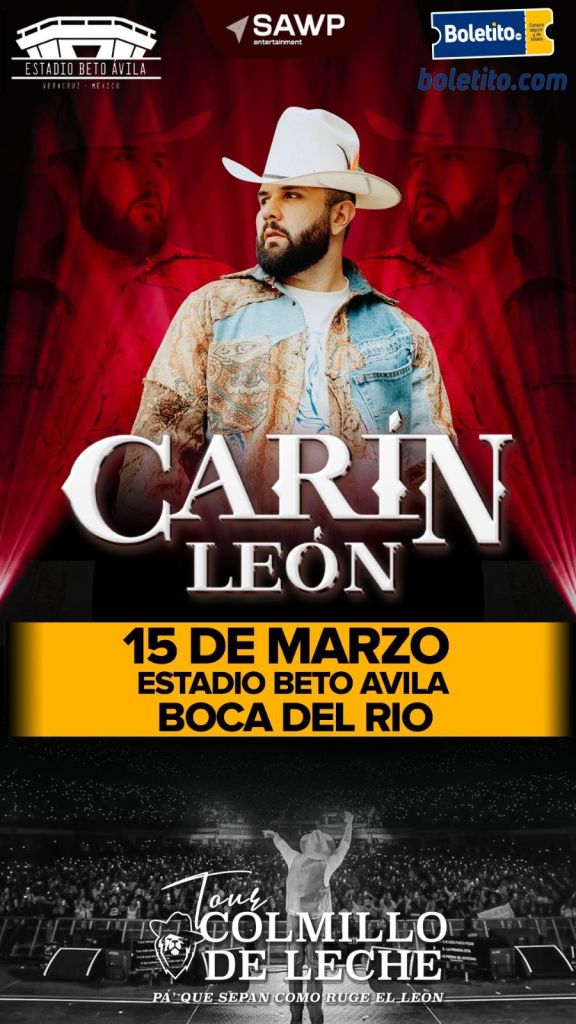 Y es que hoy viernes 15 de marzo, Veracruz recibe a Carín León gracias a Reynoso Producciones y SAWP Entertainment con este concierto en el que previamente actuarán Óscar Calín y Grupo Alfa.