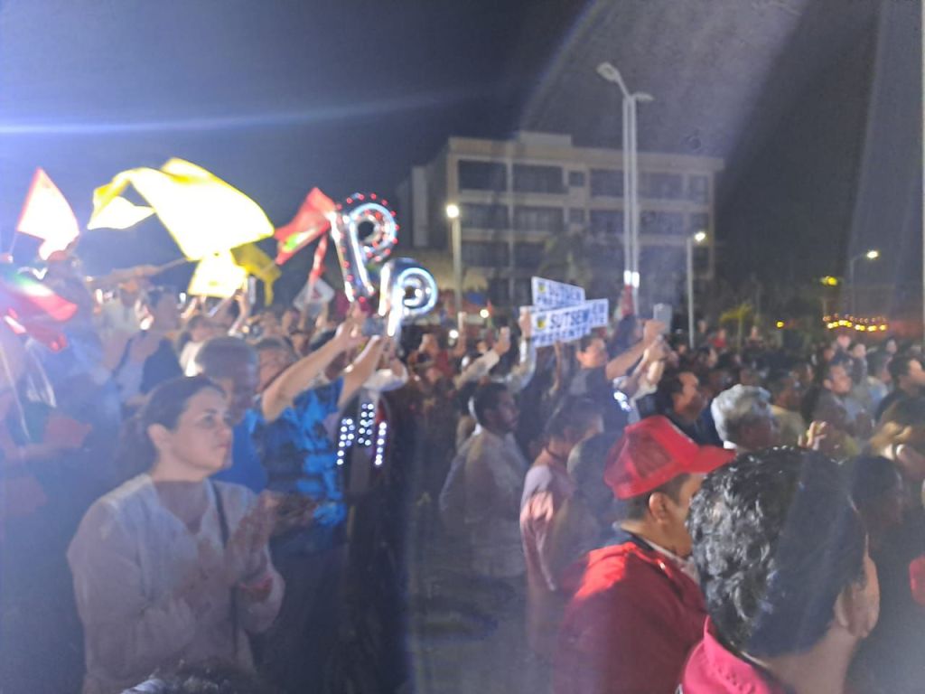 Minutos más tarde y cuando se desplegaba en el cielo una tropa de drones, los cuales dibujaron en el aire la palabra Pepe y Gobernador; un versador soltó unas décimas al más puro estilo de la región de la Cuenca y Sotavento.