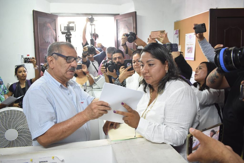 «Aprovecho que estamos aquí para decirle al OPLE que si él no vigila la contienda, las mujeres la vamos a vigilar. Hemos presentado el escrito de queja. Pedimos que no se permita la violencia entre candidatos y candidatas. Firmar acuerdo de no agresión y no violencia entre candidatos y candidatas que están participando.»