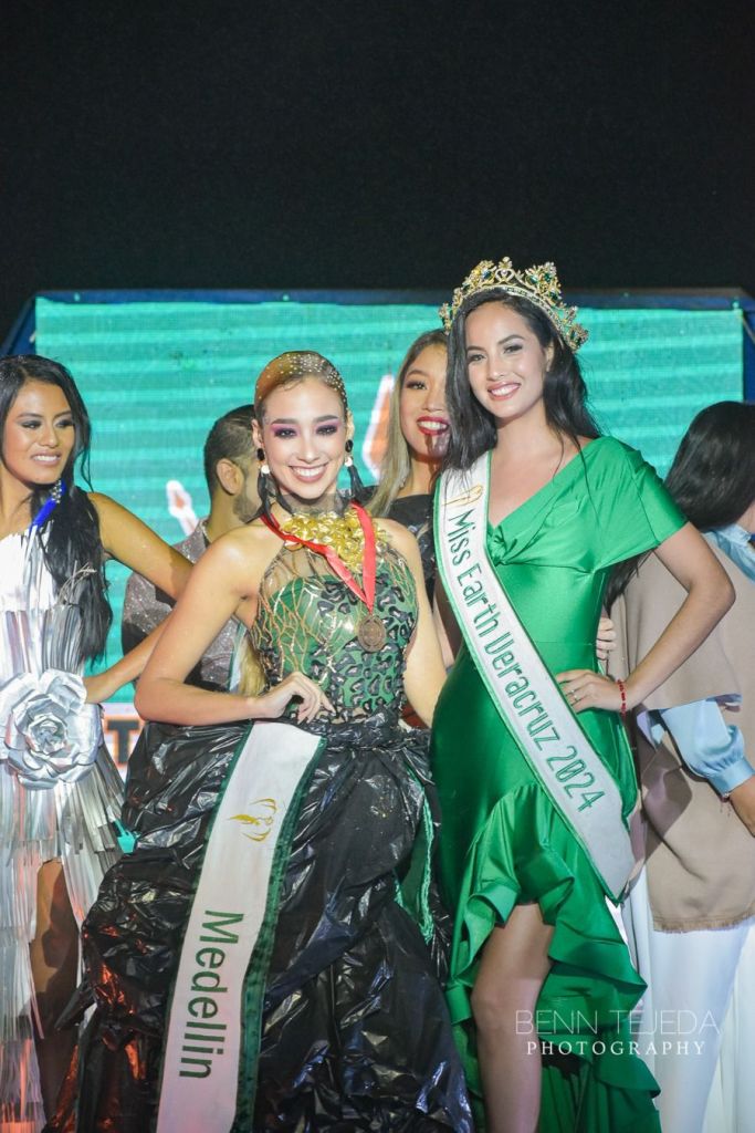 El primer lugar de Traje Reciclado fue para el atuendo del diseñador Alberto Montoya que lució Génesis Vera, del municipio de Boca del Río.