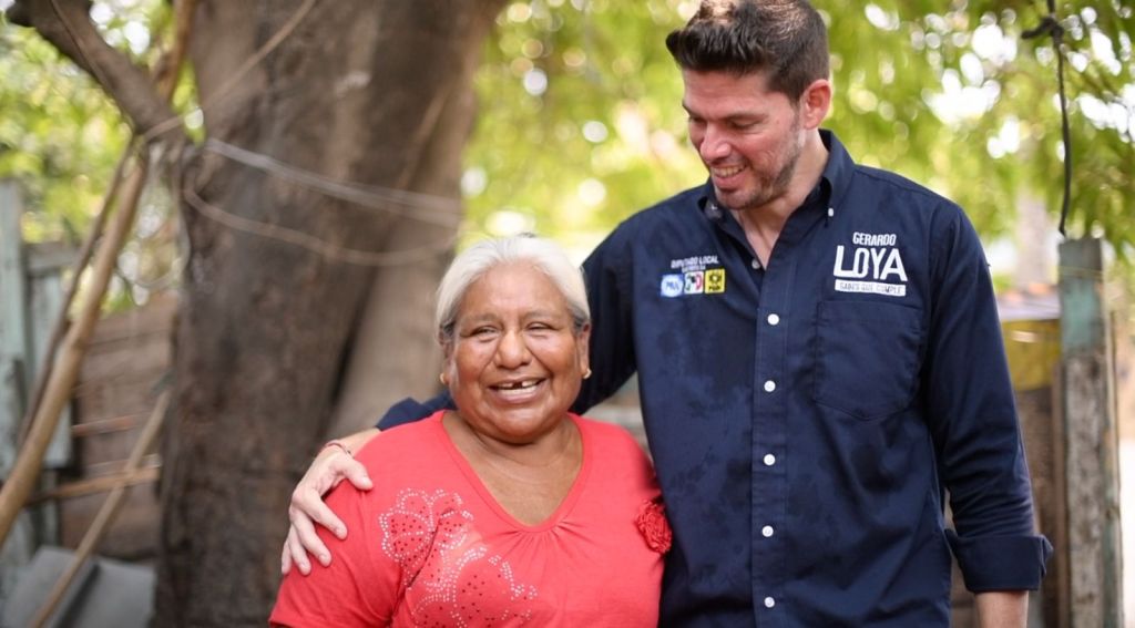 La señora Santa Luisa interrumpió para expresar su apoyo al candidato, exclamando: «¡Gerardo Loya sí te apoya!».