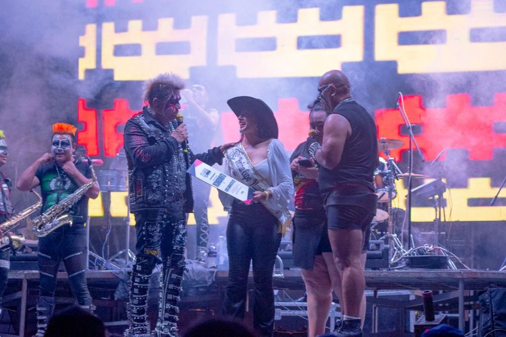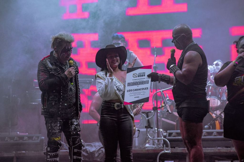 En medio de su alocada y exitosa presentación, los oriundos de Rinconada recibieron un reconocimiento otorgado por Reynoso Producciones y la directiva de la Expo Feria Regional Ganadera de Ylang Ylang, entregado por María Fernanda Molina González, la reina de esta 56 edición.