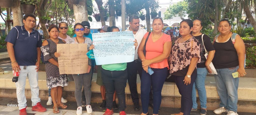 Veracruz, Ver.- Padres de Familia de la Telesecundaria «Mariano Abasolo» en Boca del Río, se manifestaron la mañana de este jueves en el zócalo de la ciudad de Veracruz, y señalaron que denunciaron ante la Fiscalía de Veracruz a una madre de familia que intenta agredir físicamente a algunos estudiantes.