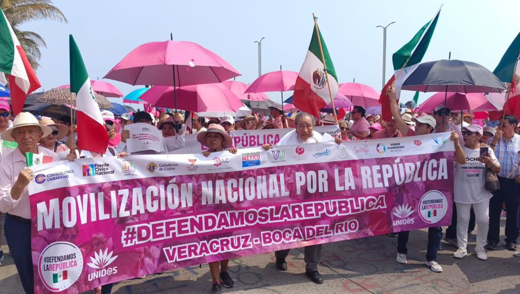 Veracruz, Ver. – La marcha «Marea Rosa’ por la democracia se hizo presente en la zona conurbada Veracruz-Boca del Río.