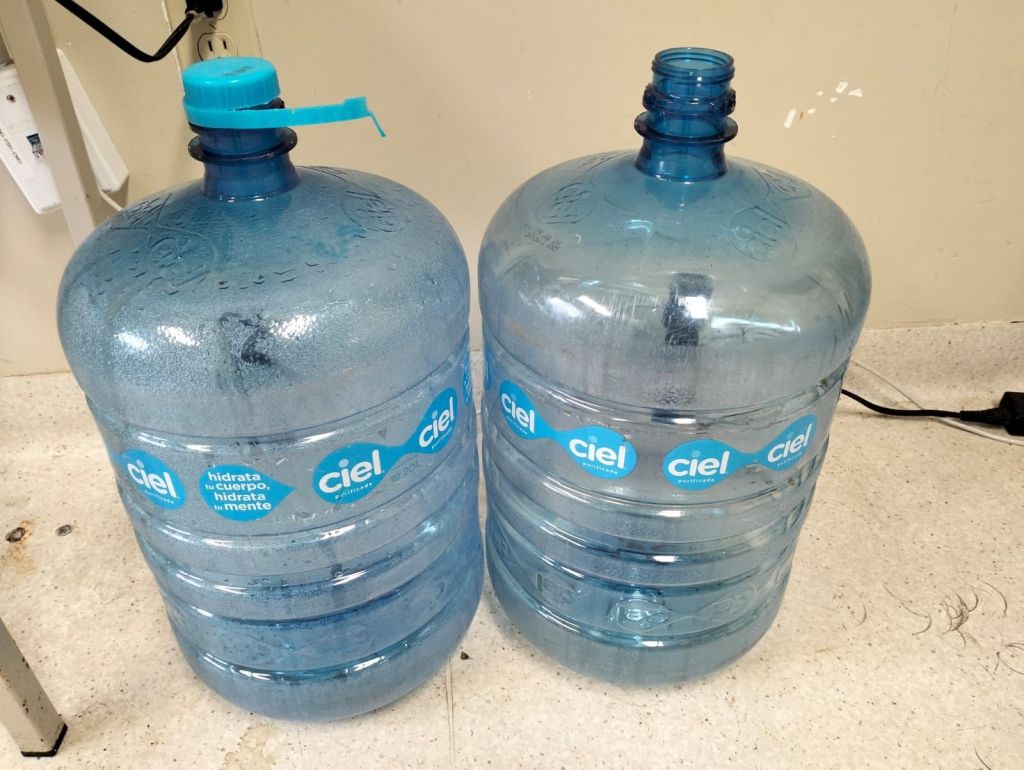 Los familiares de pacientes han tenido que de manera constante comprar botellas de agua para tener a su ser querido hidratado.