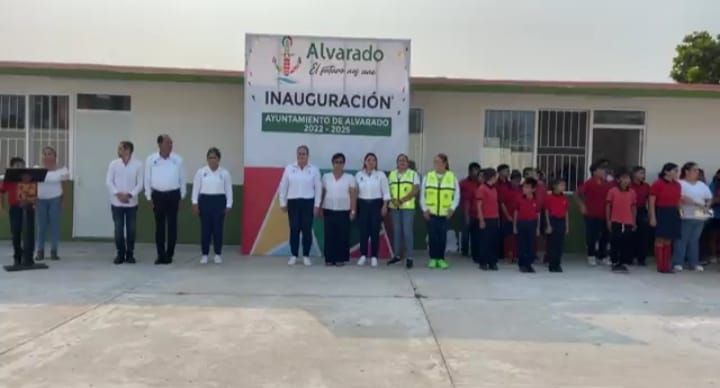 Alvarado, Ver.- La alcaldesa Lizzette Alvarez Vera inauguró obras en cuatro escuelas y puso en marcha obras de infraestructura en distintos puntos de la ciudad, cumpliendo compromisos con los ciudadanos.