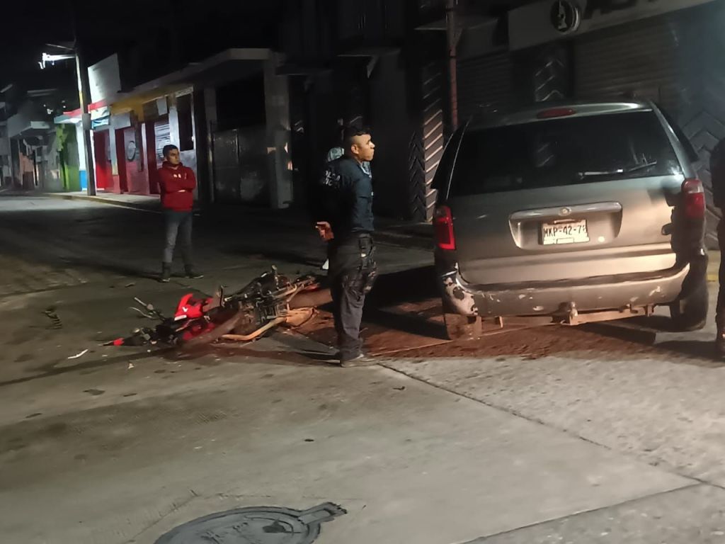 Huatusco, Ver.- Un fuerte y aparatoso accidente llevó a un joven motociclista al hospital tras impactarse con una camioneta en calles de la cabecera municipal de Huatusco.