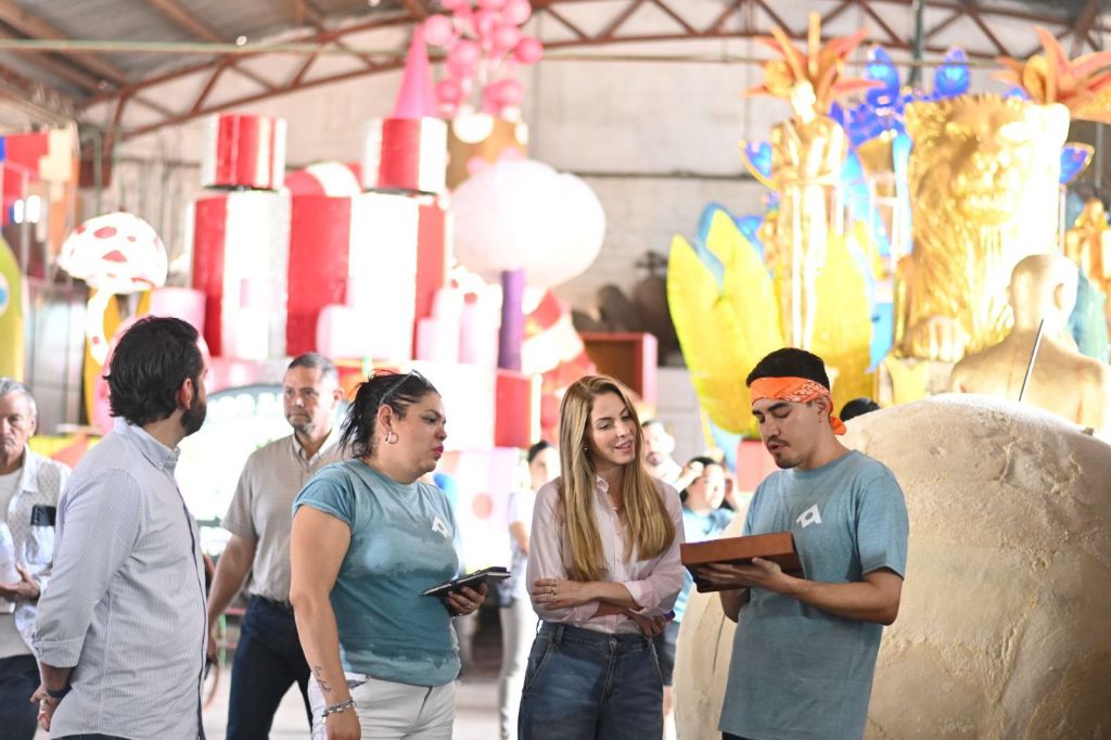La Alcaldesa elogió el arduo trabajo del equipo a pesar del intenso calor en la bodega,. «La gente está trabajando sin parar, para que los diseños de estos carros alegóricos queden increíbles», señaló.