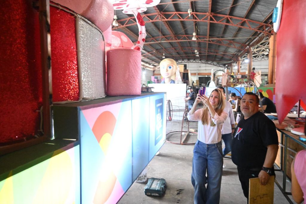 Durante su recorrido de supervisión, la alcaldesa compartió detalles de algunos de los elementos que adornarán estos carros.