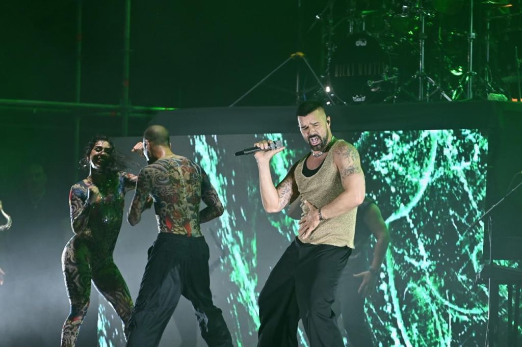 En la Macroplaza, bailaron, cantaron y corearon los grandes éxitos musicales de Ricky Martín, quien inició su espectáculo musical con las canciones “Pégate”, “María”, “Adrenalina”, y “She Bangs”.