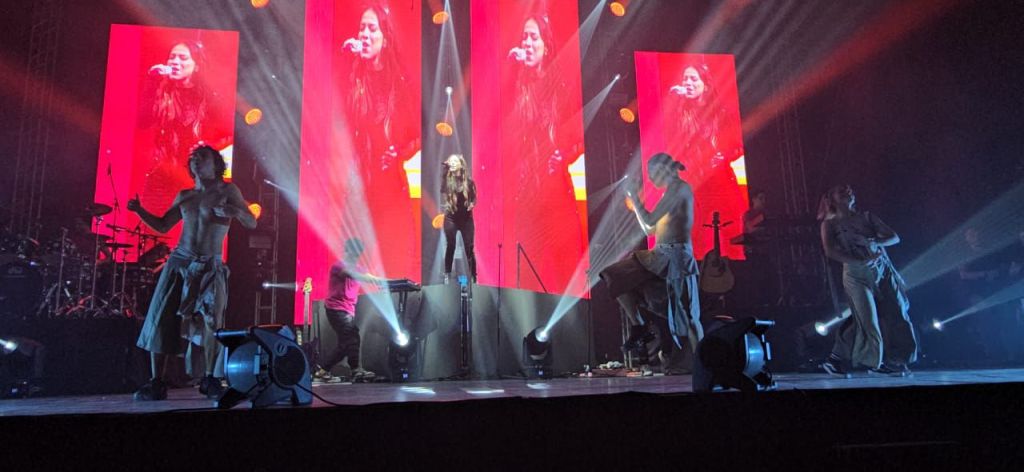 Acompañada de cuatro músicos y seis bailarines, la cantautora ofreció una noche cargada de emociones y éxitos