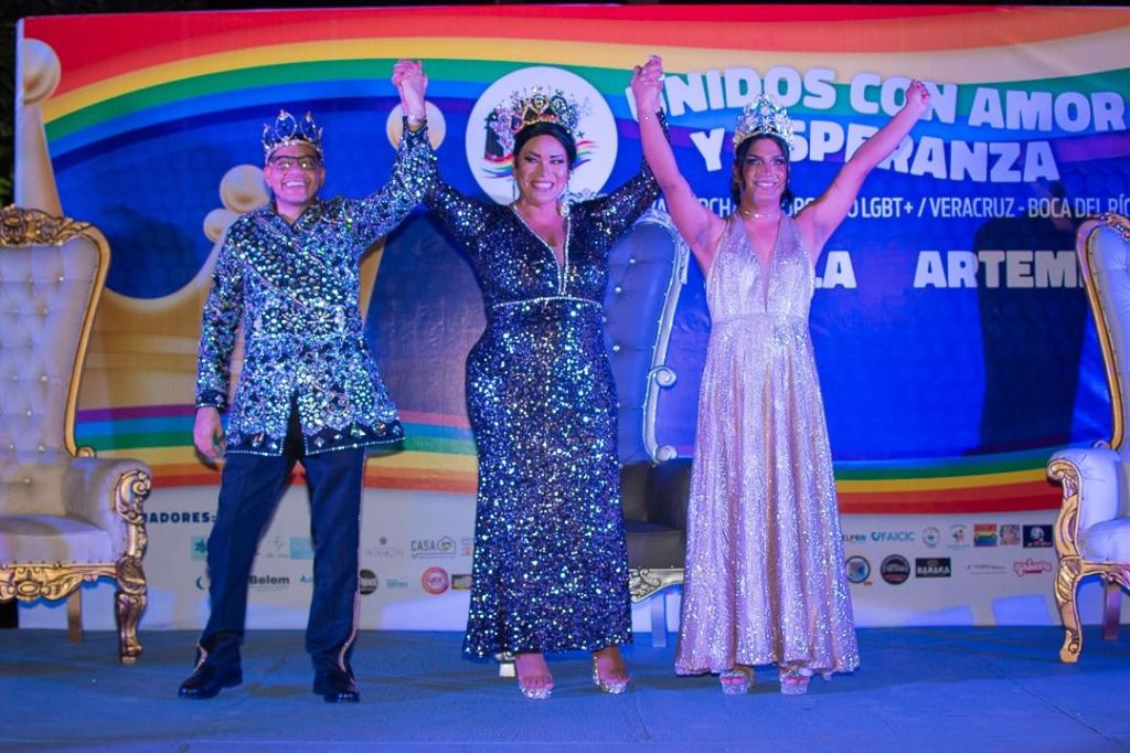 Boca del Río, Veracruz. Julio 2024.-* Ante una numerosa asistencia se llevó a cabo en el Zócalo de Boca del Río la coronación de los reyes de la 13va Marcha LGBTQ+ Veracruz/Boca del Río: Lucas Navarro I; Keyla I y Artemis Glam I.
