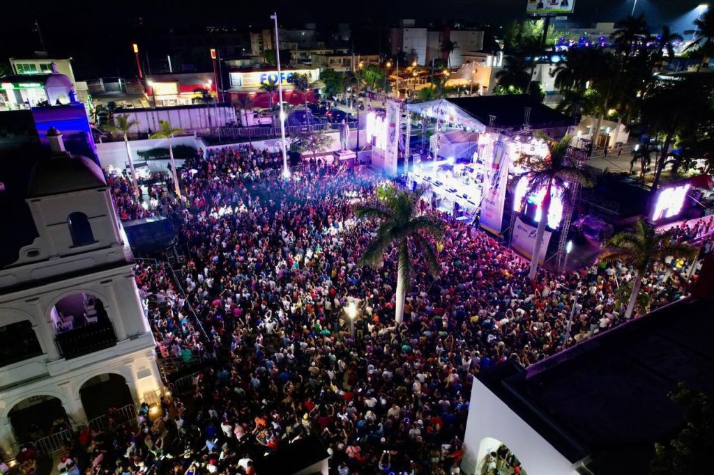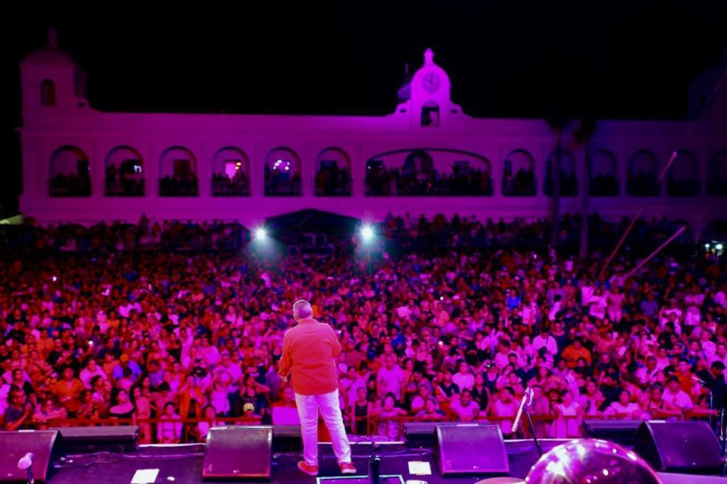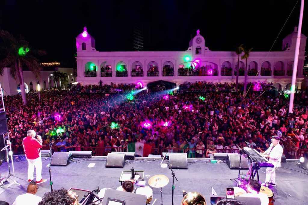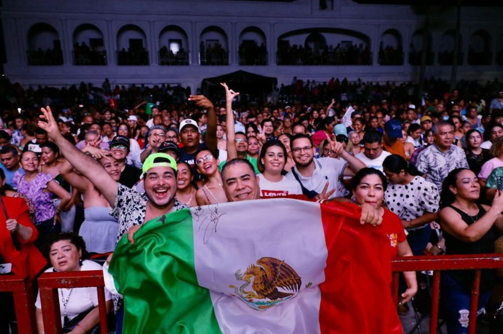 Y enseguida la orquesta dio inicio a la melodía para cantar “Más que tu amigo”, “Eres para mi” y “Tuyo”, convirtiendo a la Plaza Cívica en una enorme pista de baile.