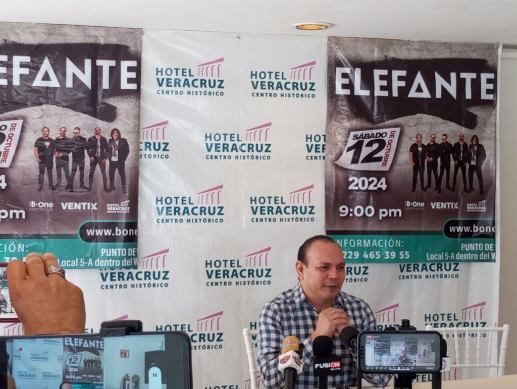 Barrios Rodríguez reiteró que el concierto de Grupo Elefante se realizará el sábado 12 de octubre en la Arena Veracruz situada en la calle Alaminos del Fraccionamiento Virginia del Puerto de Veracruz, a un costado del complejo deportivo Leyes de Reforma.