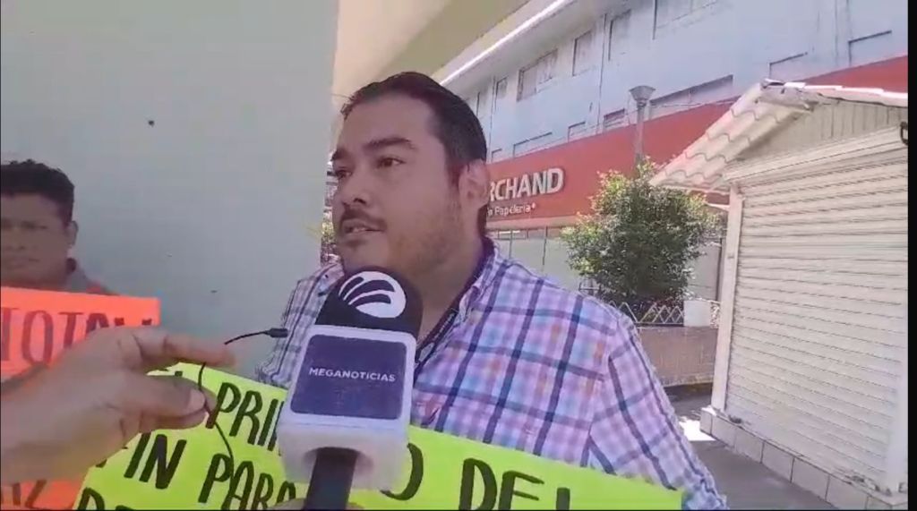 La manifestación se llevó a cabo afuera de la sucursal del Nacional Monte de Piedad en la avenida Salvador Díaz Mirón.