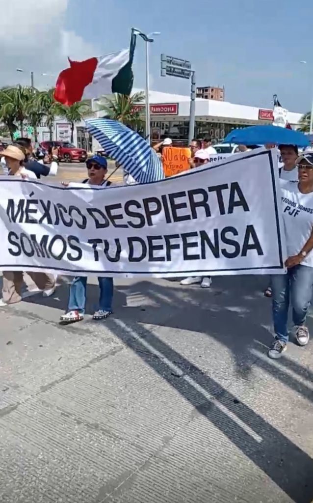 La marcha, que comenzó en el bulevar Adolfo Ruiz Cortines, recorrió varias calles de la ciudad y finalizó en las instalaciones del Poder Judicial, contando con la presencia de personal de tránsito municipal para garantizar la seguridad de los manifestantes.