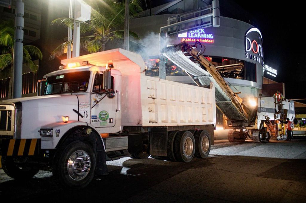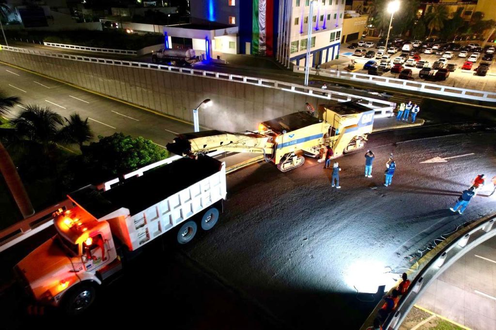 “Anoche supervisé el inicio de la rehabilitación en la Glorieta de Plaza Américas para mejorar la carpeta asfáltica en esta importante zona comercial y turística de la ciudad.