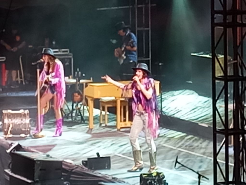 Las luces del recinto se apagaron y aparecieron las Ha Ash ataviadas con botas , sombrero y blusas a cuadros ,habiendo que todo el público presente gritara de la emoción,en ese momento sonó el tema «No te quiero nada».
