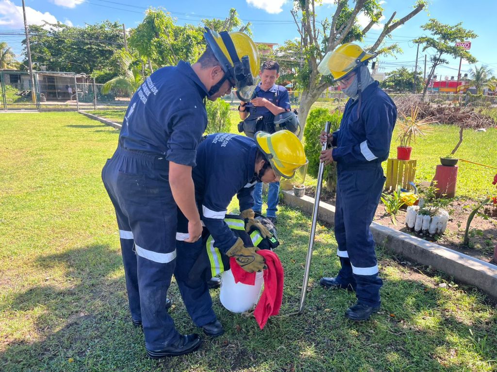 El Heroico Cuerpo de Bomberos de Veracruz acudió al plantel educativo Estudios de la Vera – Cruz para dar respuesta a la situación, el reptil se encontraba en una canaleta cerca del patio de la escuela ubicada en el fraccionamiento La Florida.