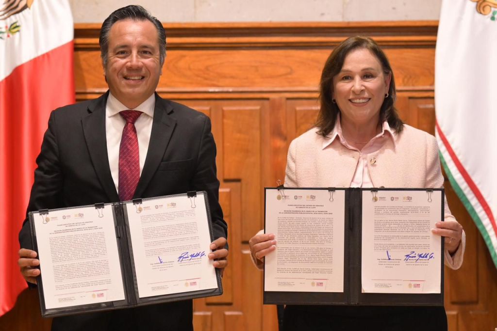 >Rocío Nahle y Cuitláhuac García Jiménez firmaron las actas de entrega-recepción.