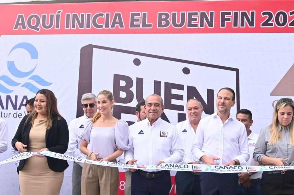 Veracruz, Ver., 15 de noviembre de 2024.- La alcaldesa Patricia Lobeira encabezó este viernes el evento de corte de listón para el inicio del programa “Buen Fin 2024”, organizado por la Cámara Nacional de Comercio, Servicios y Turismo (CANACO-ServyTur) de Veracruz.