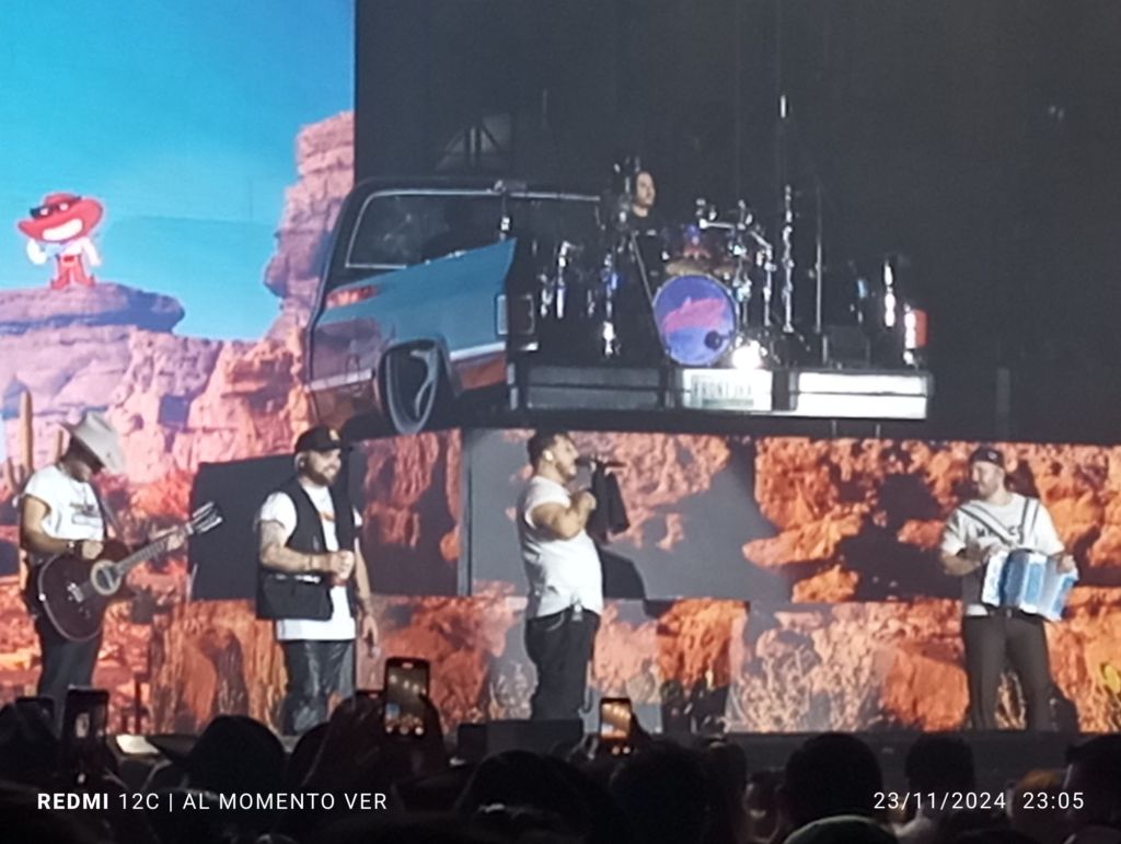 El espectáculo continuó con temas como “Ya pedo quién sabe” y “En altavoz”, mientras los asistentes celebraban cada canción con un brindis simbólico junto a la banda. Grupo Frontera siguió haciendo cantar al público con hits como “Ojitos rojos”, “Ángel” y “Tulum”, antes de cerrar la noche con la energética “Bebé dame”.