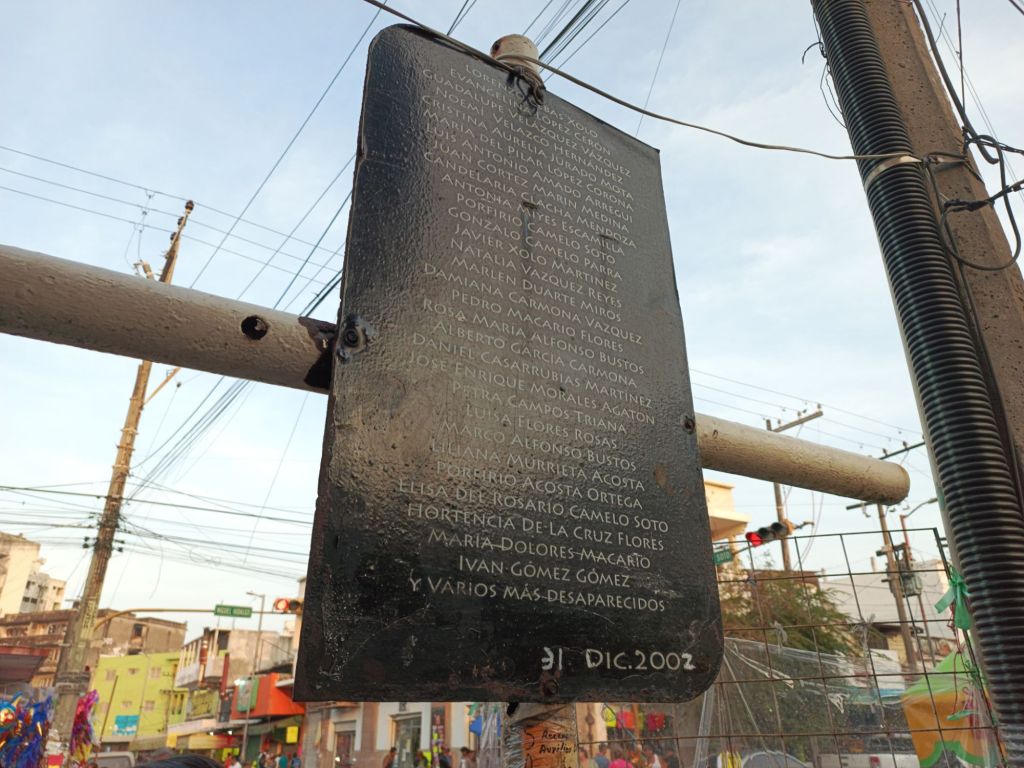 «Los cohetes provocó un incendio muy feo justo donde están parados conmigo,murió mucha gente y fue un dia muy triste para los que vivimos y los que nos tocó estar aquí, yo tenía 23 años ”,acto seguido el señor prosigue su camino para vender sus productos