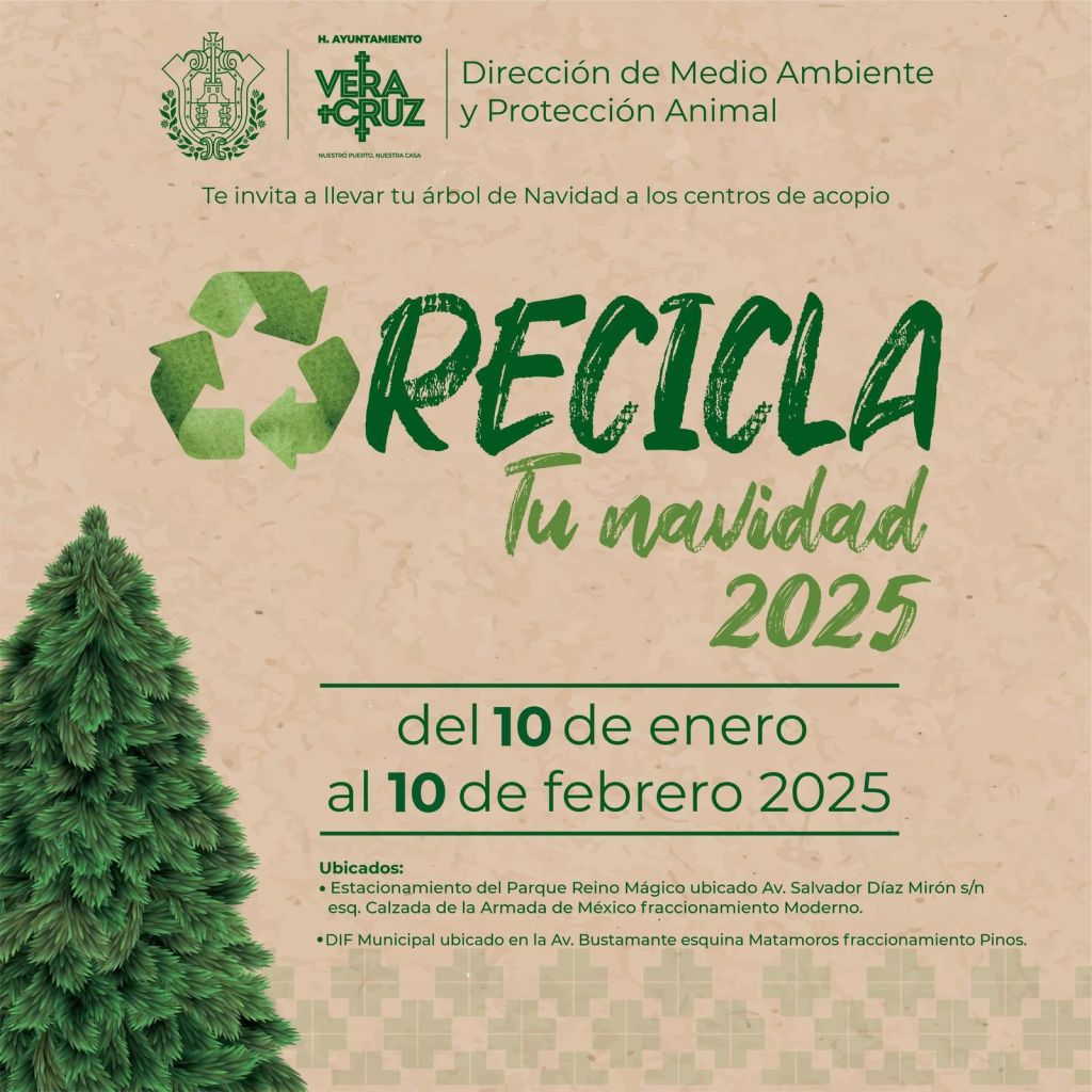 Veracruz, Ver.- Para evitar que los árboles de Navidad sean abandonados en las calles y se conviertan en basura, la Dirección de Medio Ambiente del Ayuntamiento de Veracruz instaló un centro de acopio en Reino Mágico, donde los pinos serán reciclados y convertidos en composta.