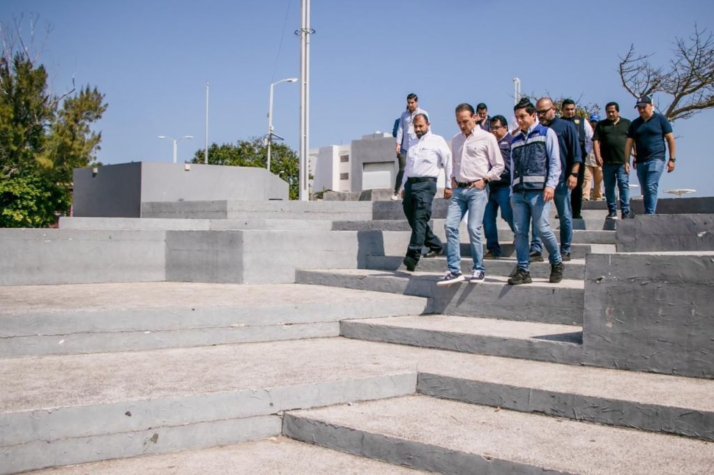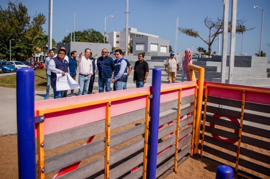 El alcalde de Boca del Río, Juan Manuel Unánue Abascal, recorrió y anunció la rehabilitación integral de la tradicional Plaza Banderas de la cabecera municipal.