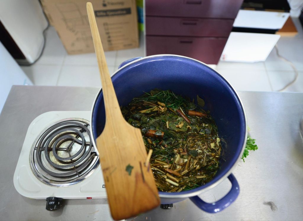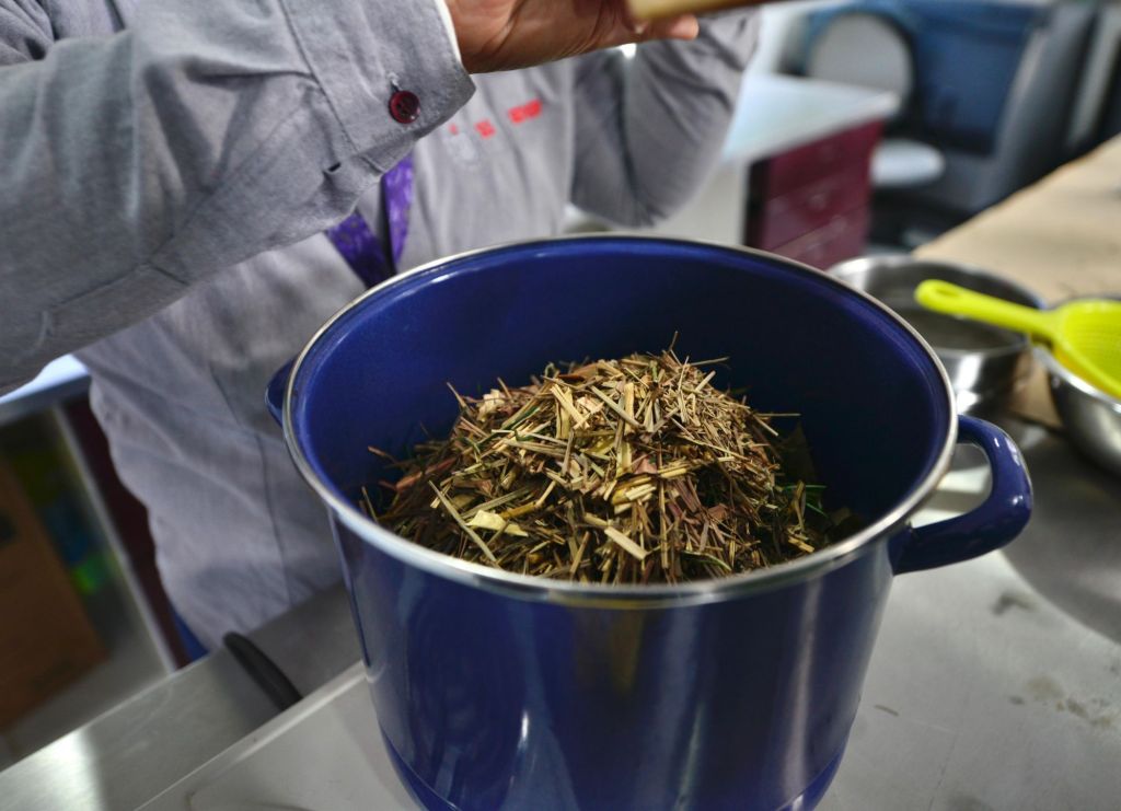 - Agregar las plantas poco a poco y dejar hervir hasta reducir a 3 litros.