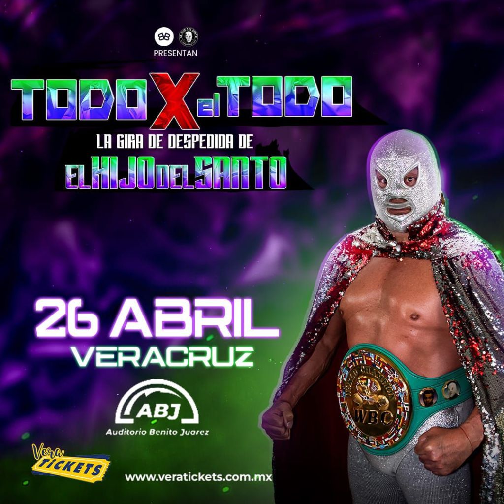 *Veracruz, Veracruz. 18 de febrero 2025.-* El heredero de la máxima leyenda de la lucha libre en México, El Hijo del Santo SÍ LLEGARÁ a Veracruz con su gira de despedida “Todo X el Todo”, ahora el sábado 26 de abril.
