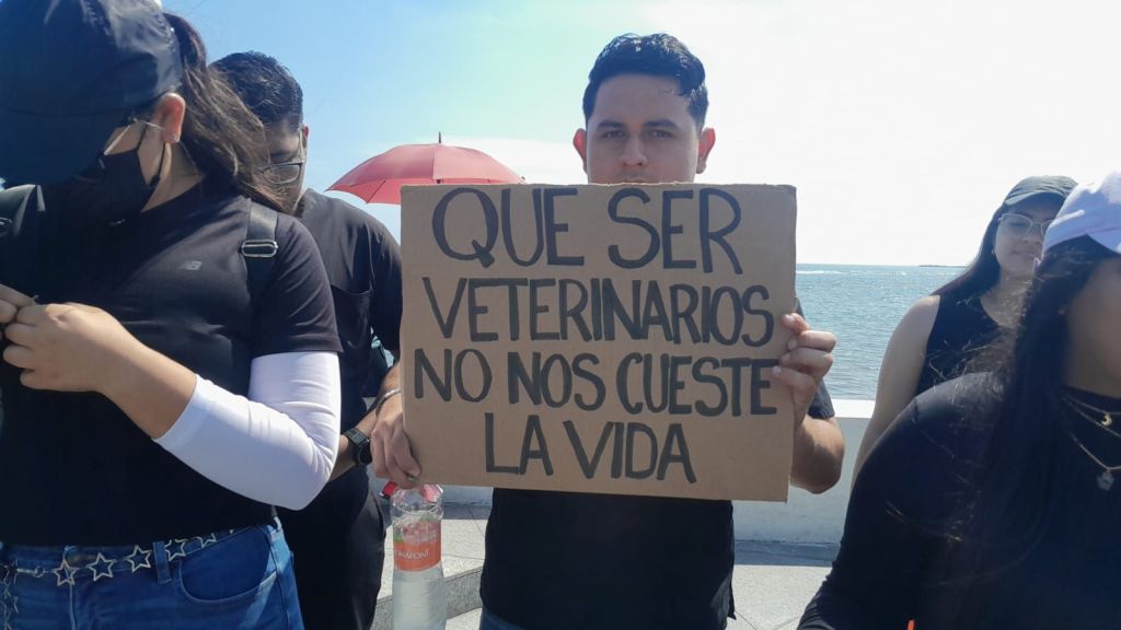 Desde el Asta Bandera, en el bulevar Manuel Ávila Camacho, los veterinarios marcharon hasta el Acuario de Veracruz, gritando consignas en memoria de su colega y exigiendo un alto a la violencia contra el gremio. A la movilización también se sumaron estudiantes de distintas universidades de la región.