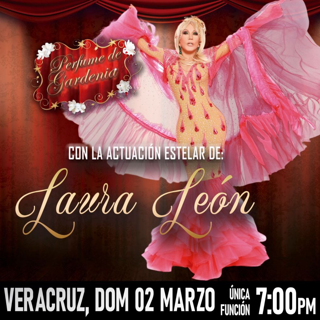 *Veracruz, Veracruz. Febrero 2025.-* Laura León “La Tesorito”, una de las máximas estrellas de la música tropical, estará este domingo 2 de marzo en Veracruz como parte del elenco internacional del espectáculo de cabaret “Perfume de Gardenia”.