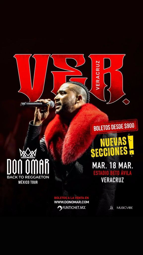 *Veracruz, Veracruz. 14 Marzo 2025.-* Music Vibe lanza una inusitada promoción para el concierto que Don Omar ofrecerá en Veracruz este martes 18 de marzo en el estadio de béisbol “Beto Ávila”.