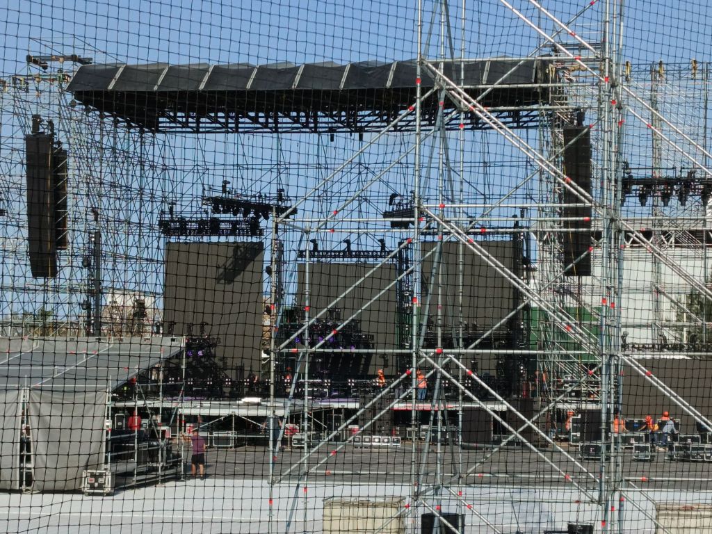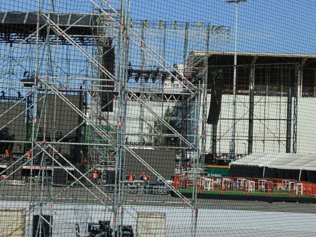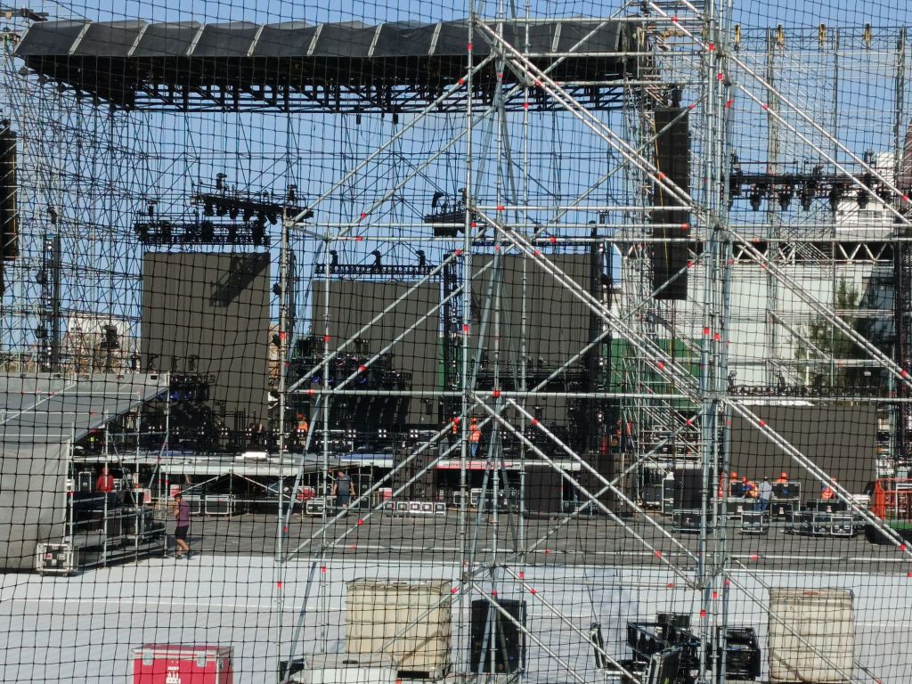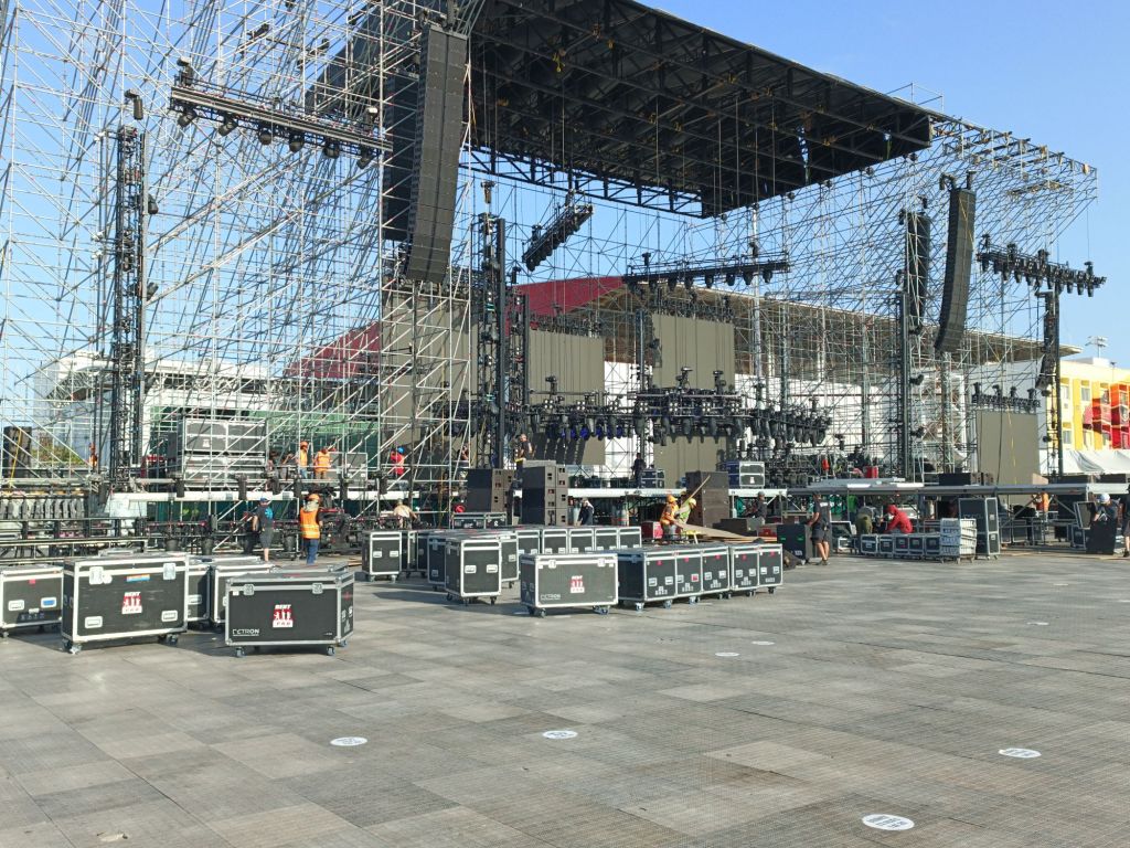Pantallas de alto formato, miles de luces en escena, 30 tráilers de producción y un histórico número de pirotecnia es lo que están montando más de 100 personas que trabajan entre iluminadores, técnicos e ingenieros.