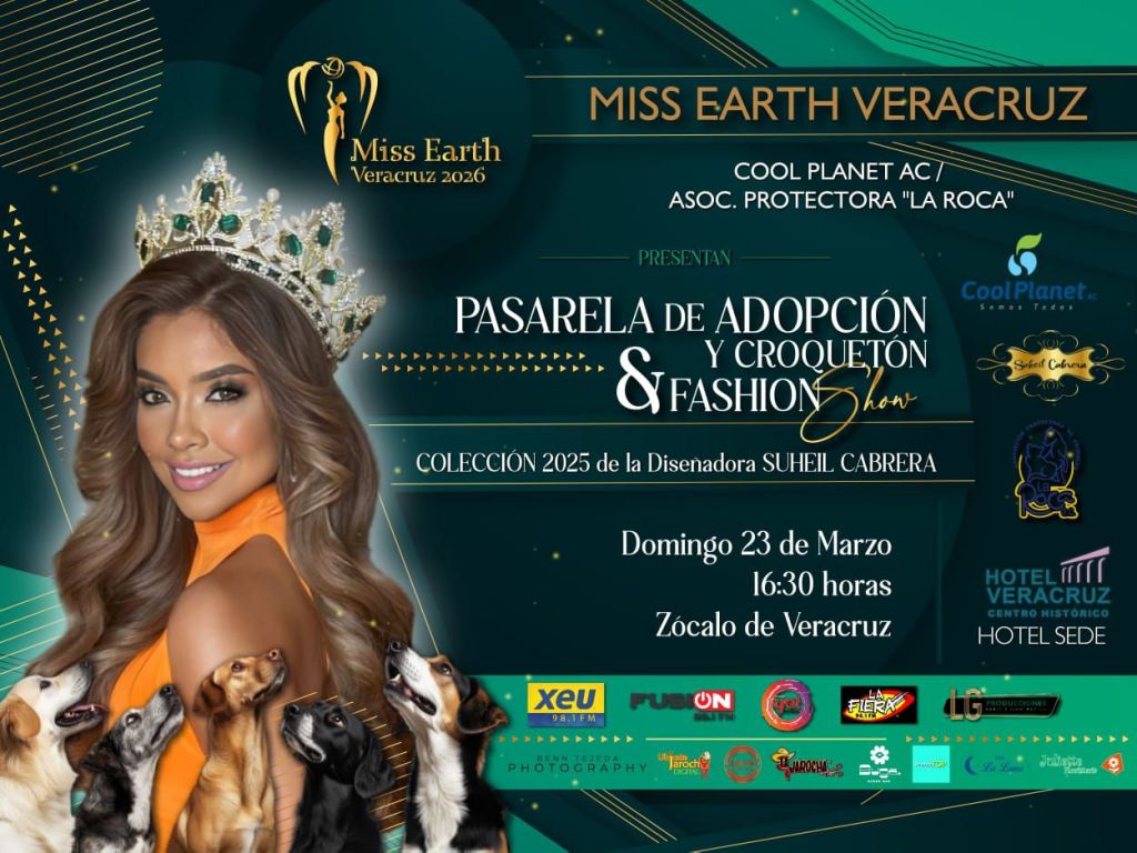 *Veracruz, Ver. Marzo 2025.-* Miss Earth Veracruz, el certamen de belleza con causa más importante del estado, en alianza con las asociaciones civiles Cool Planet y “La Roca” Sociedad Protectora de Animales, realizará una Pasarela de Adopción de perritos & Croquetón, además del Fashion Show con las exquisitas prendas de vestir de la diseñadora xalapeña Suheil Cabrera.