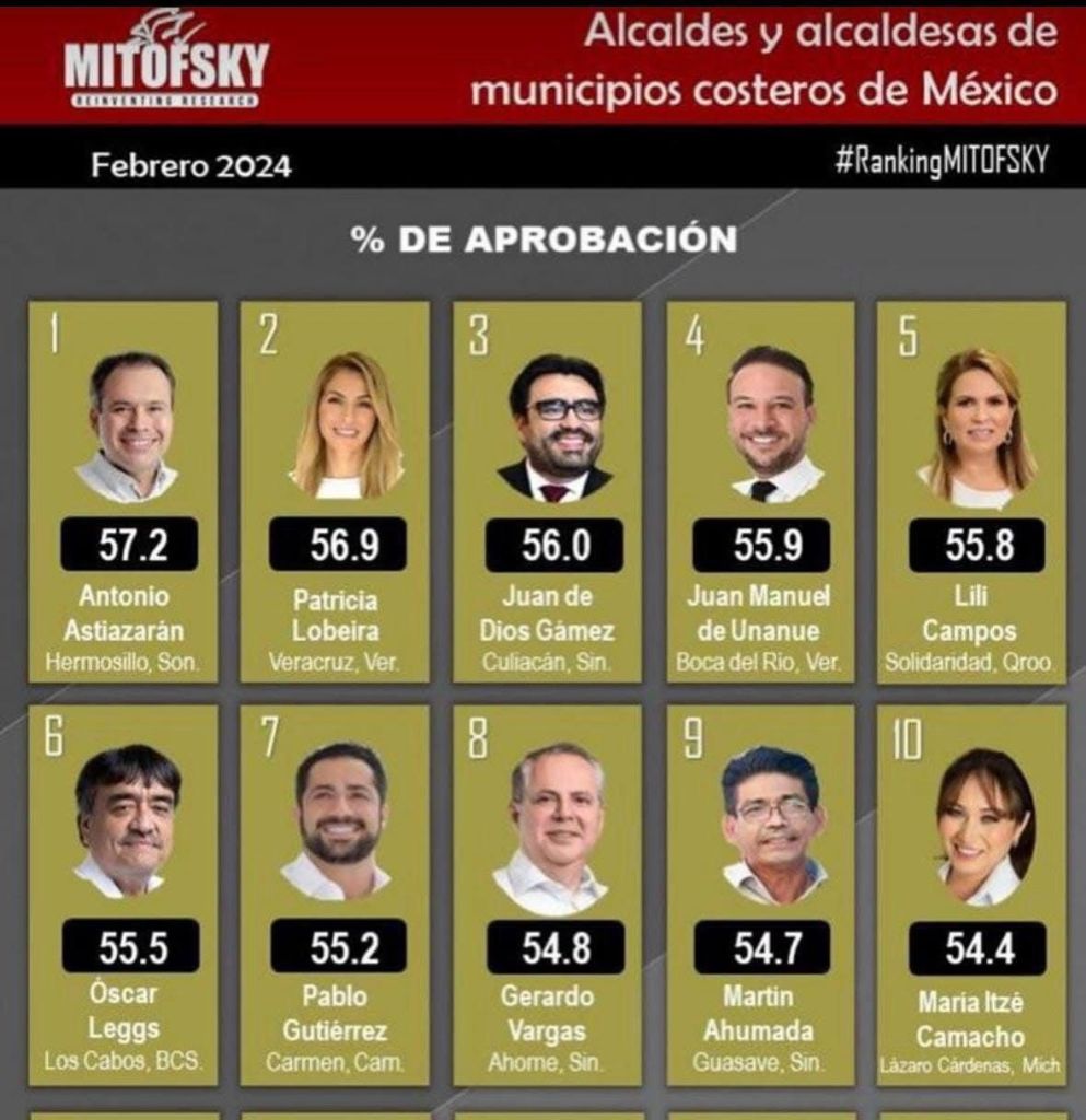Juan Manuel Unánue Abascal continúa el año con una gran aceptación y es que de acuerdo a la prestigiada encuestadora Mitofsky se encuentra en la posición 4 de los alcaldes costeros con mejor desempeño y aprobación ciudadana a nivel nacional.